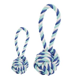 リサイクル糸とアゾフリー染料で作られたこの丈夫で環境に優しいロープおもちゃは、何時間も追いかけたり、噛んだり引っ張ったりして楽しめます。